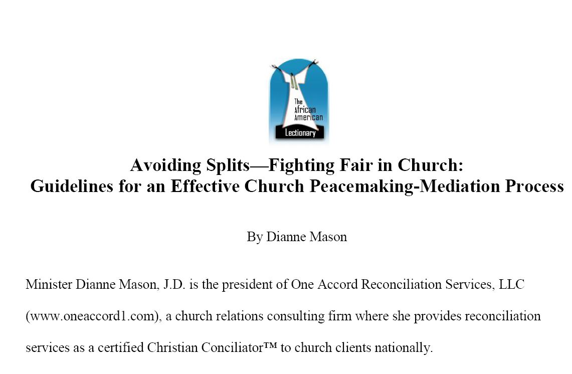 Avoiding Splits – Fighting Fair in Church: Guidelines for an Effective Church...